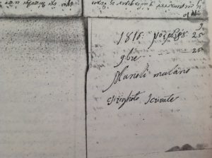 - Σε διαφορετικά σημεία του χειρογράφου σημειωμένα με λατινικούς χαρακτήρες υπάρχει αναφορά στο όνομά του συντάκτη και στη χρονολογία σύνταξης: ‘Manolo malano cjirighioto Scrivate’ (sic) και χρονολογία 1816: Νοεμβρίου 25. Και στις τελευταίες σελίδες μαζί με το όνομα ‘manolis malanos’ υπάρχει η επεξήγηση ότι ‘έγραψε για να μάθει’ και τονίζει ότι ‘για να έχουμε καλή απόδοση είναι ανάγκη όλοι να μελετάμε’ κι ακόμη ότι ο Κύριος ευλόγησε τον Manoli malano (Domini benedictum Manoli malano).