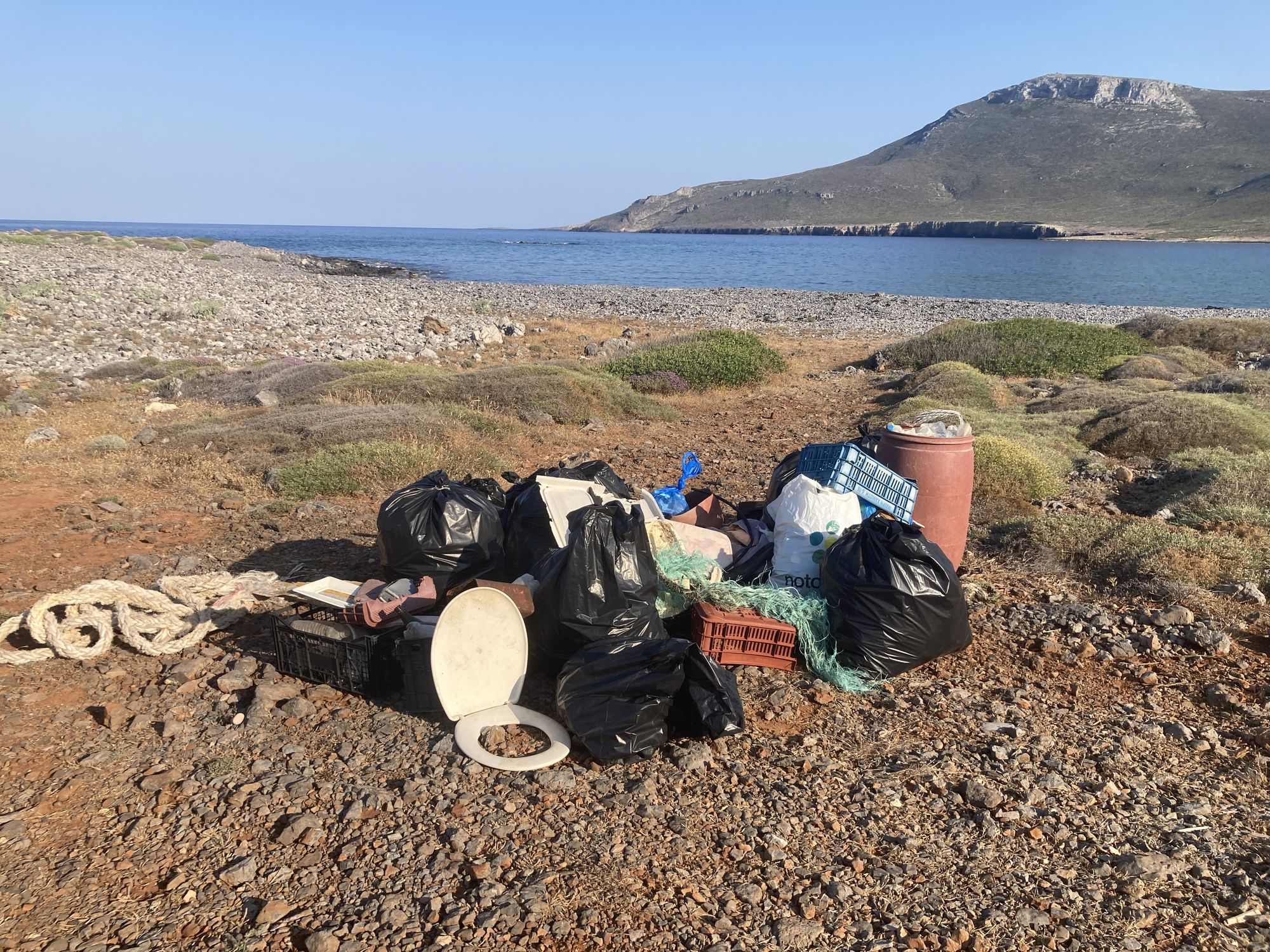 Η ομάδα εθελοντών της Δράσης Πολιτών Kythera Green ανέλαβε τον καθαρισμό της δυτικής ακρογιαλιάς του Φιδονησίου, το νησάκι που προστατεύει από τον βοριά το λιμάνι Διακοφτιού. Τα σκουπίδια που συσσωρεύτηκαν επί σειρά ετών είναι κυρίως αλλά όχι αποκλειστικά φερμένα από το κύμα και τον αέρα – ανάμεσά τους βρέθηκαν και πολλοί πλαστικοί σωλήνες συστήματος αυτόματου ποτίσματος. Η πρώτη αυτή δράση είχε ως αποτέλεσμα τη συλλογή αξιόλογου όγκου σκουπιδιών, που στοιβάχτηκαν προσεχτικά δίπλα στον πλησιέστερο προσβάσιμο χωματόδρομο, απ’ όπου θα παραληφθούν όπως πάντα με φροντίδα του δημοτικού συμβούλου Γιάννη Κατσανεβάκη – τον ευχαριστούμε θερμά! Θα χρειασθεί όμως και δεύτερη δράση από τους εθελοντές ώστε να ολοκληρωθεί το έργο καθαριότητας στο Φιδονήσι, κάτι που θα πραγματοποιηθεί εντός του μήνα,.