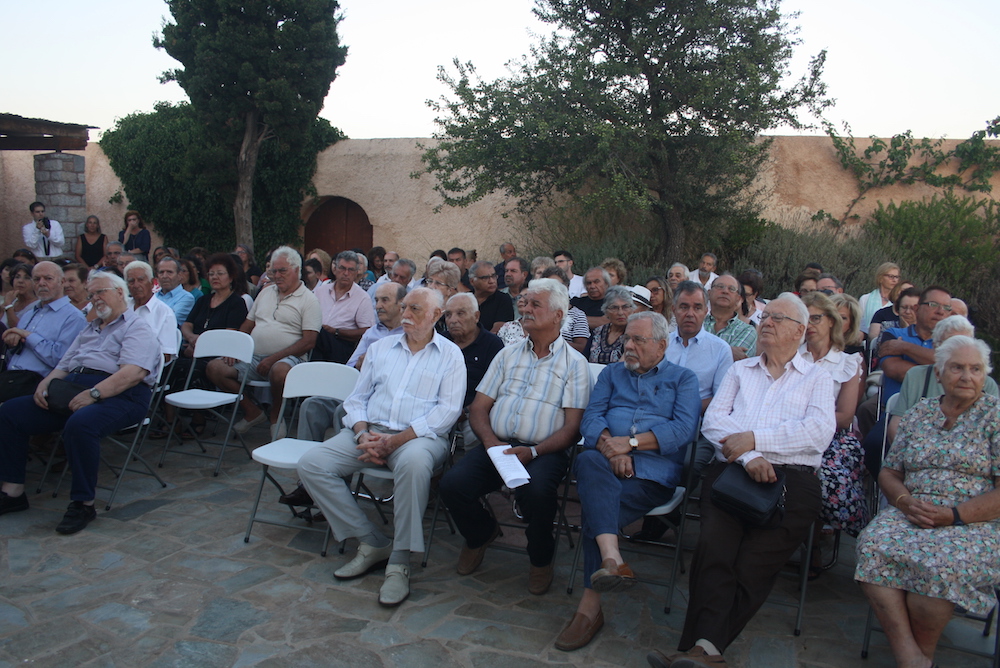 Η εκδήλωση, που παρουσίασε ο Αντ/δρος της Εταιρείας κ. Εμμ. Καλλίγερος, έκλεισε με χαιρετισμούς του Μητροπολίτη κ. Σεραφείμ, του προέδρου του Τριφυλλείου Ιδρύματος κ. Εμμ. Καλοκαιρινού και του προέδρου του ΚΙΠΑ ομ. Καθηγητή κ. Γ. Κασιμάτη. Στην αρχή της εκδήλωσης ο Δημ. Σύμβουλος κ. Μ. Αγγελιουδάκης διάβασε χαιρετισμό του Δημάρχου Κυθήρων κ. Ε. Χαρχαλάκη, ο οποίος βρισκόταν εκτός Κυθήρων.
