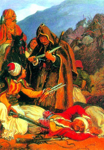 Ας μην ξεχνάμε όμως τις τουρκικές θηριωδίες στο Μεσολόγγι που ήταν ακόμα νωπές και τις μακάβριες αποστολές κεφαλιών και αφτιών Ελλήνων από τον Ιμπραήμ και τον Κιουταχή στην Κωνσταντινούπολη…