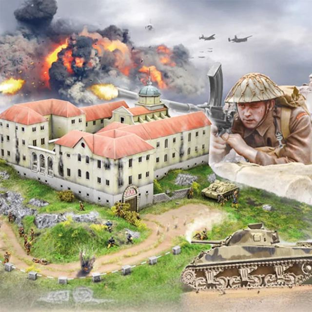 Πάνω από την κοιλάδα του ποταμού Λίρι, 130 χλμ. νότια της Ρώμης βρίσκεται το αβαείο του Μόντε Κασίνο. Χτίστηκε το 529 μ.Χ. από τον Άγιο Βενέδικτο, στη θέση αρχαίου ιερού του Απόλλωνα και αποτελούσε μία από τις σημαντικότερες αμυντικές τοποθεσίες σε όλη την Ευρώπη. Τα τείχη του είχαν ύψος 45 μέτρων και πάχος 3 μέτρων. Από τον νότο, προστατευόταν από τους ποταμούς Ραπίντο και Γκαριλιάνο οι οποίοι σχηματίζουν στους πρόποδες του όρους μια φυσική τάφρο. Πάνω από την πύλη της κεντρικής εισόδου υπήρχε μια λίθινη πλάκα με την επιγραφή «Pax» (Ειρήνη) την οποία σπάνια όμως γνώρισε το μοναστήρι.
