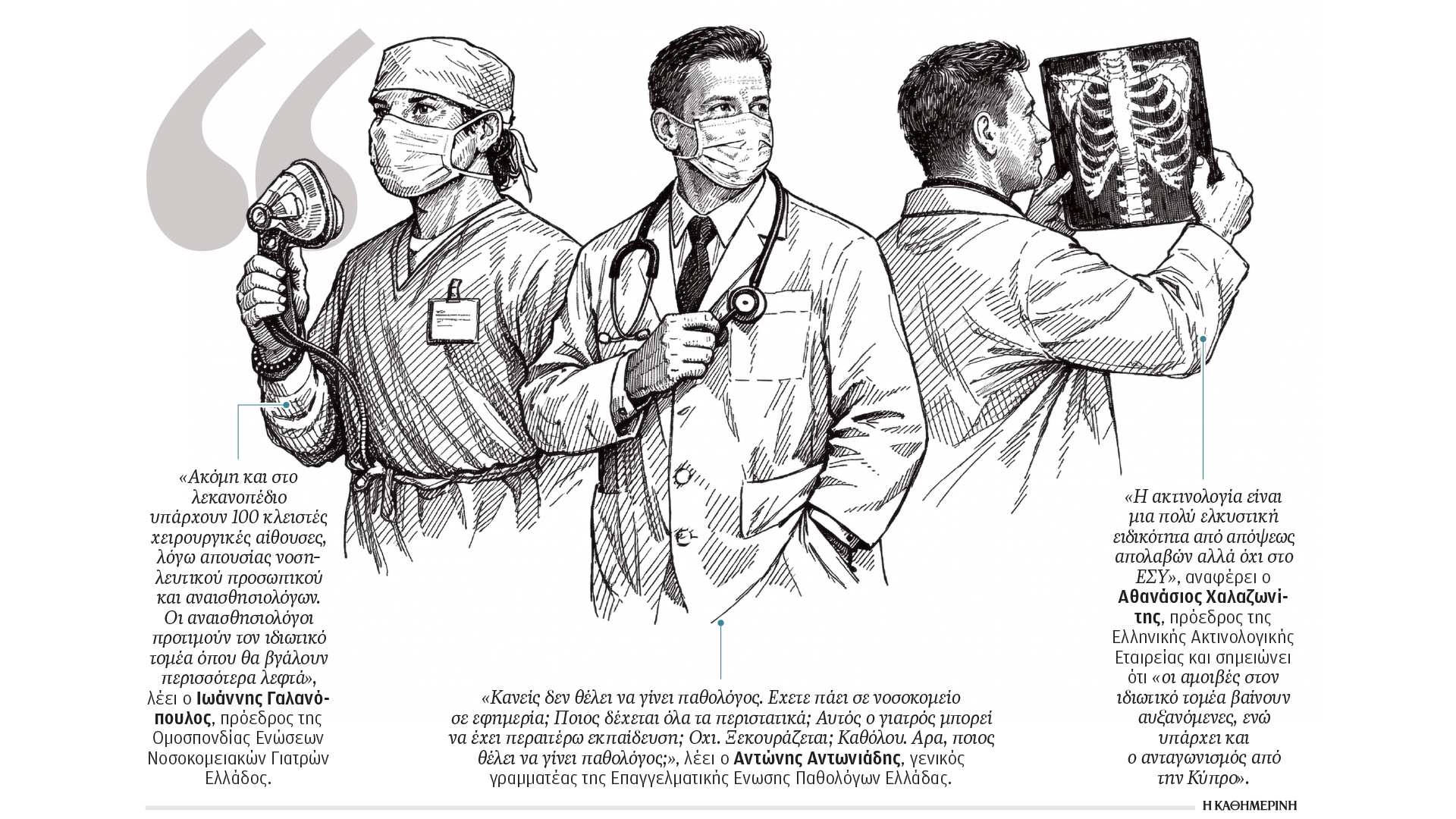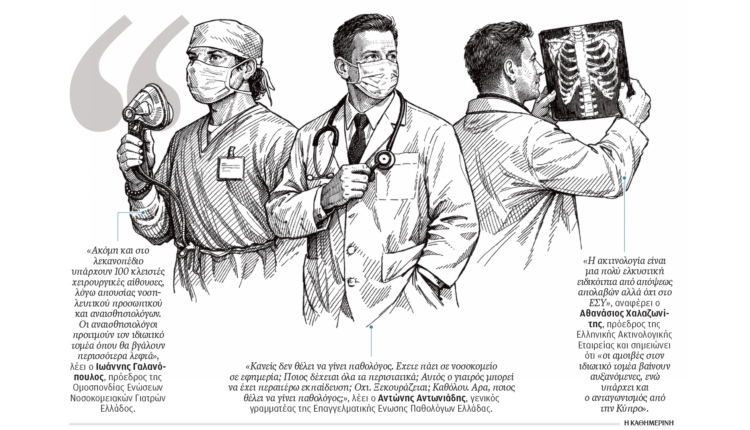 Από την πλευρά των παθολόγων ο Αντώνης Αντωνιάδης, γενικός γραμματέας της Επαγγελματικής Ενωσης Παθολόγων Ελλάδας, τονίζει ότι «κανείς δεν θέλει να γίνει παθολόγος. Εχετε πάει σε νοσοκομείο σε εφημερία; Ποιον βλέπετε πρώτο; Ποιον βλέπετε τελευταίο; Ποιος δέχεται όλα τα περιστατικά της εφημερίας; Αυτός ο γιατρός μπορεί να έχει περαιτέρω εκπαίδευση; Οχι. Ξεκουράζεται; Καθόλου. Αρα ποιος θέλει να γίνει παθολόγος;».