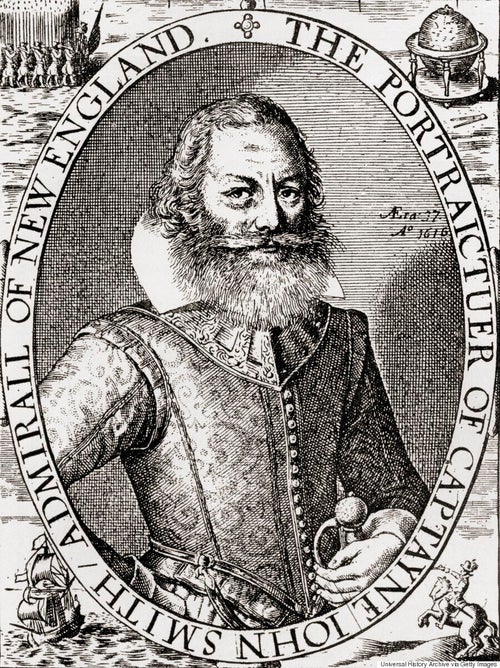 Ο Τζον Σμιθ σε πορτρέτο του που περιεχόταν στον Χάρτη της Νέας Αγγλίας του 1614, τον οποίο έφτιαξε ο ίδιος.