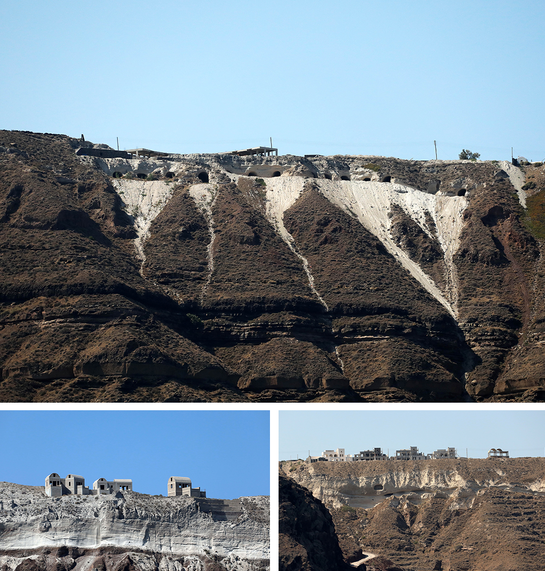 Η ζήτηση για κλίνες και στέγη οδηγεί σε μια ανοικοδόμηση χωρίς αρχή και τέλος. «Αν πας σε κάποιο ψηλό σημείο δεν βλέπεις τα χωριά να ξεχωρίζουν μεταξύ τους. Σε ένα μεγάλο κομμάτι, μετά το Ακρωτήρι και μέχρι τον φάρο (σσ. το νότιο άκρο του νησιού) τώρα χτίζονται παντού ξενοδοχεία», λέει η κ. Ρικάκη. Ο φακός της «Κ» εντόπισε νέες κατασκευές ακόμα και μέσα στην καλντέρα. Το ζήτημα διχάζει την τοπική κοινωνία.