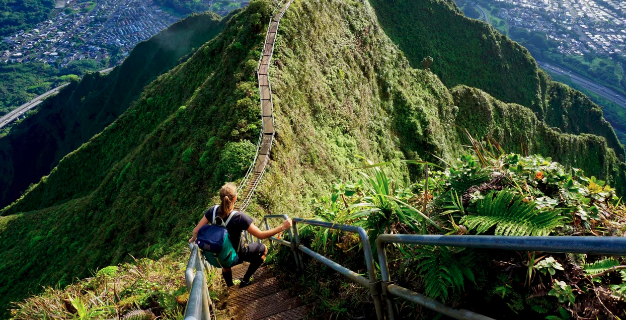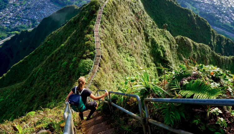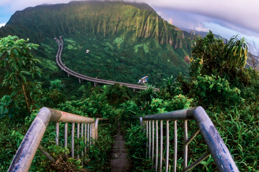 Η απότομη ανάβαση 2.480 ποδιών, περιλαμβάνει 3.922 στενά σκαλοπάτια ενσωματωμένα στην οροσειρά Koolau του νησιού Oahu και επιτρέπει στους πεζοπόρους να αισθάνονται ότι το κεφάλι τους ακουμπάει κυριολεκτικά στα σύννεφα.