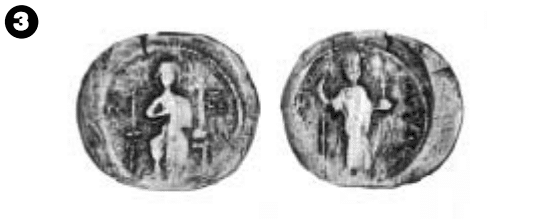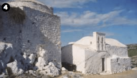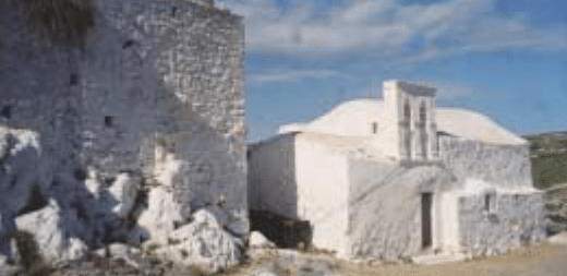 Εκτός, όμως, από την περίπτωση της, κατά την Πρωτοβυζαντινή περίοδο, μεταθέσεως του οικιστικού κέντρου από το παράκτιο Καστρί στο ορεινό έρεισμα του Αγίου Γεωργίου στο Βουνό, κατά την ανασκαφή του Γιάννη Σακελλαράκη η τύχη επέδειξε για μία ακόμη φορά την εύνοιά της, με την απροσδόκητη ανακάλυψη, στο πλάτωμα της εκκλησίας του Αγίου Γεωργίου, χρυσής βούλας (σφραγίδας) του Αλεξίου Α’ Κομνηνού, που ήταν ανηρτημένη σε έγγραφο χρυσόβουλο του δραστήριου εκείνου αυτοκράτορα της Μεσοβυζαντινής περιόδου (1081-1118 μ.Χ.) και μάλιστα προ του 1091, όπως έχει αποδείξει η ερευνήτρια των νομισμάτων και σφραγίδων της ανασκαφής στον Άγιο Γεώργιο, καθηγήτρια Βάσω Πέννα (εικ. 3). Στην εύλογη απορία για το γεγονός που προκάλεσε την έκδοση αυτοκρατορικού διατάγματος σχετικά με τον απομακρυσμένο αυτό τόπο, έρχεται να δώσει απάντηση η προσεκτική παρατήρηση της δεύτερης εκκλησίας επί του πλατώματος του Βουνού, που είναι αφιερωμένη στον Άγιο Νικόλαο και την Παναγία (εικ. 4). Πράγματι, επί της νότιας λιθοδομής της εκκλησίας, όπου ανοίγεται και πλευρική θυρίδα επικοινωνίας, χωρίς πρόσβαση σήμερα, σώζονται τα υπολείμματα τοίχου κτιρίου, πιθανότατα ενταγμένου σε μοναστηριακό συγκρότημα, στο οποίο ανήκαν και οι επί του πλατώματος δύο δεξαμενές με το «κελλαρικό», ενώ σε επαφή με τον βόρειο τοίχο της μεταγενέστερης (16ος αιώνας μ.Χ.) εκκλησίας του Αγίου Γεωργίου υψώνεται τοίχος με άνοιγμα παραθύρου, που επίσης ανήκε σε παλαιότερο κτίριο. Και είναι επίσης πιθανό, το μεσο-βυζαντινό αυτό μοναστήρι να ήταν αφιερωμένο στον προστάτη των ναυτιλλομένων, τον Άγιο Νικόλαο, που διαδέχθηκε το ιερό κορυφής της Μινωϊκής λατρείας.