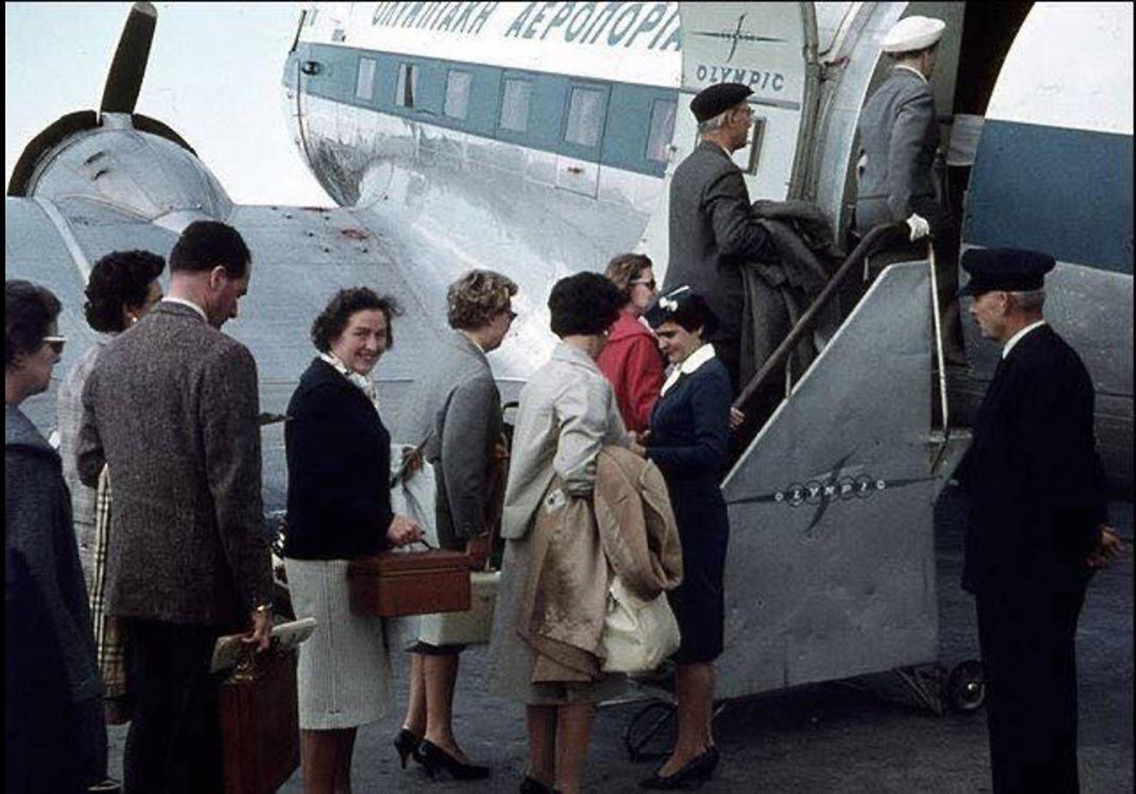 Η Ολυμπιακή διατήρησε τα DC-3 (γνωστότερα ως Dakota) της ΤΑΕ. Στιγμιότυπο από την επιβίβαση ταξιδιωτών (Συλλογή ΠΟΛΚΕΟΑ)