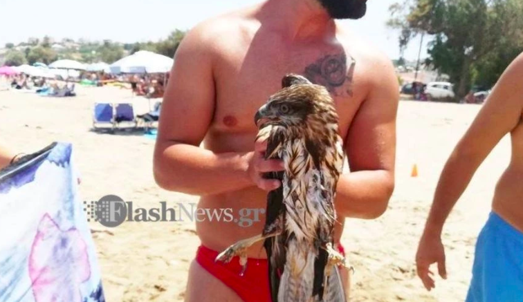 Αμέσως πήρε την σανίδα και βούτηξε, ενώ μόλις έφτασε στο σημείο διαπίστωσε πως επέπλεε ένα… γεράκι το οποίο από άγνωστο λόγο είχε πέσει μέσα στο νερό και δεν μπορούσε να πετάξει.