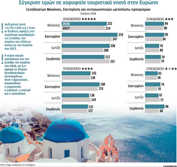 Στην Ελλάδα, όπως εξηγεί ο κ. Τάσιος, «η μέση τιμή δωματίου για Ιούλιο – Αύγουστο στα ξενοδοχεία τριών αστέρων ξεκινά από 60 ευρώ και στα τετράστερα θα πάει στα 100 ευρώ». Σημειώνει, δε, ότι ο Αύγουστος στη Μεσόγειο είναι η εποχή με την υψηλότερη ζήτηση και χρυσοπληρώνεις παντού το δωμάτιο.