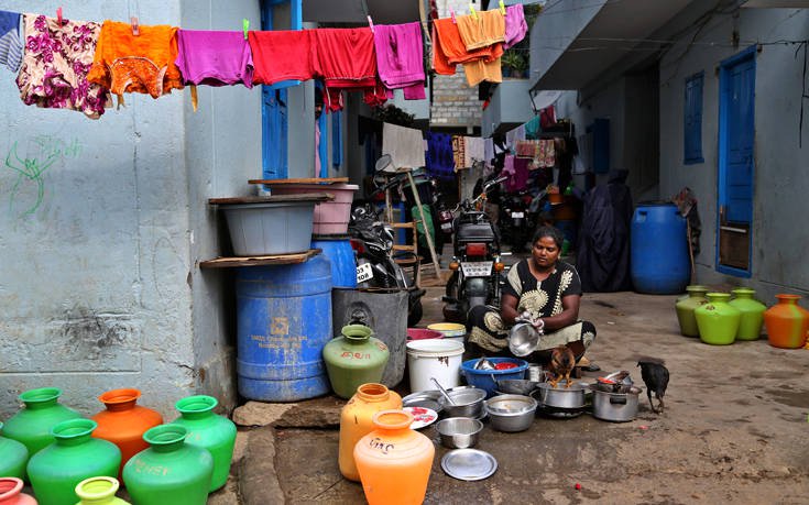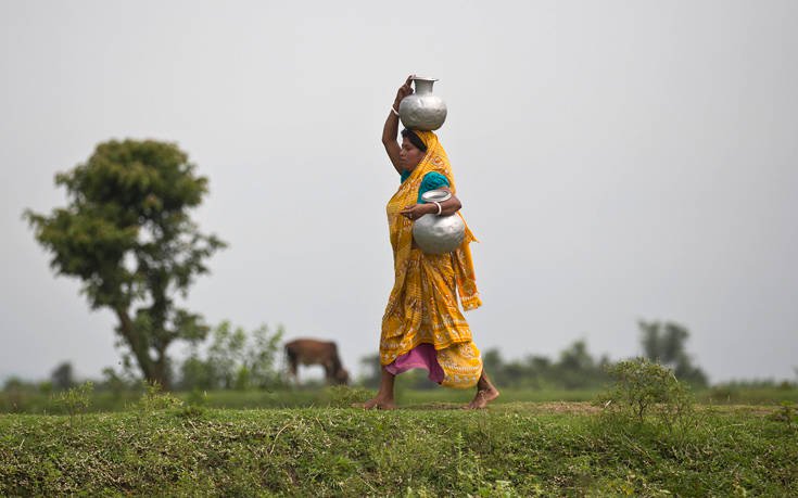 Η κρίση νερού που αντιμετωπίζει συνολικά η χώρα έχει ως αποτέλεσμα πολλές φορές οι γυναίκες να καλύπτουν μεγάλες διαδρομές μέσα στον καύσωνα, φορώντας το Σάρι, για να μεταφέρουν νερό στο σπίτι.