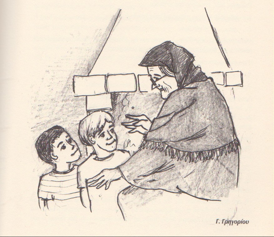 -Δεν κατέω και καλά, πουλιά μου, μα λοπώς πολεμά ο παπάς να κάμει το Θεό να θυμώσει, θαρρείς και δεν θάναι θυμωμένος από τσι αμαρτίες μας.