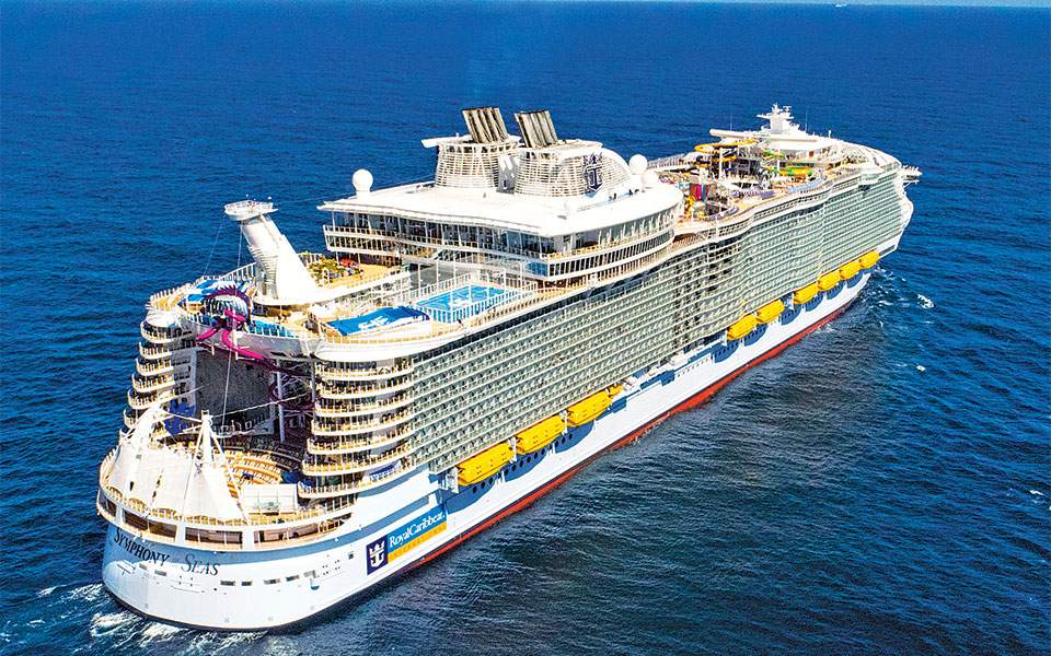 Το µήκους 362 µέτρων «Symphony of the Seas» της Royal Caribbean Cruises είναι χωρισµένο σε «γειτονιές» διαφορετικού στυλ η καθεµία και διαθέτει 16 καταστρώµατα, 2.774 καµπίνες, 22 εστιατόρια, 24 πισίνες και µια πληθώρα από άλλες ασυνήθιστες παροχές και ανέσεις.