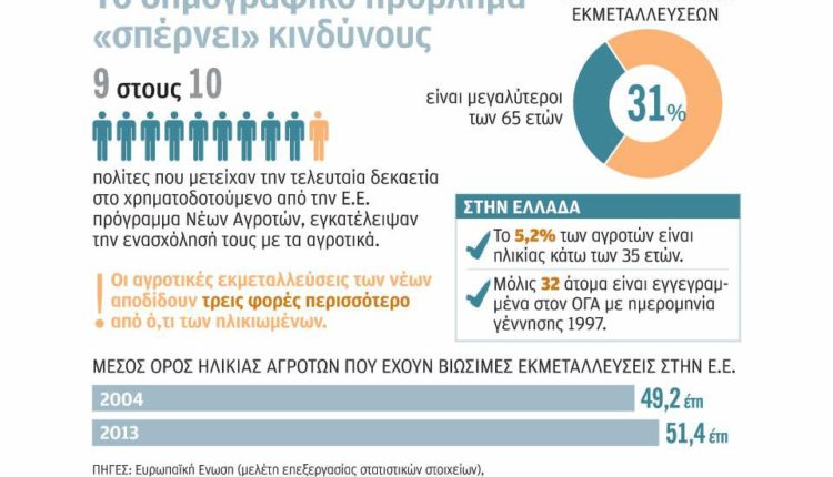 «Νέοι αγρότες» χωρίς ιδιόκτητη γη, χωρίς πρόσβαση σε χρηματοδότηση και υπό την κηδεμονία των γηραιότερων είναι οι άνθρωποι που μπαίνουν στην πρωτογενή παραγωγή στην Ευρωπαϊκή Ενωση και φυσικά και στην Ελλάδα. Παρά τα προγράμματα στήριξης νέων αγροτών που υλοποιούνται εδώ και πολλά χρόνια, ο αγροτικός πληθυσμός της Ευρώπης γερνάει όλο και περισσότερο, γεγονός που βέβαια έχει μεγάλη επίδραση στην ανταγωνιστικότητα αλλά και στη βιωσιμότητα της αγροτικής οικονομίας της Ευρώπης. Το 31% των κατόχων ευρωπαϊκών εκμεταλλεύσεων είναι μεγαλύτεροι των 65 χρόνων σύμφωνα με μελέτη της Ευρωπαϊκής Ενωσης που αφορά την Αγροτική Παραγωγή.