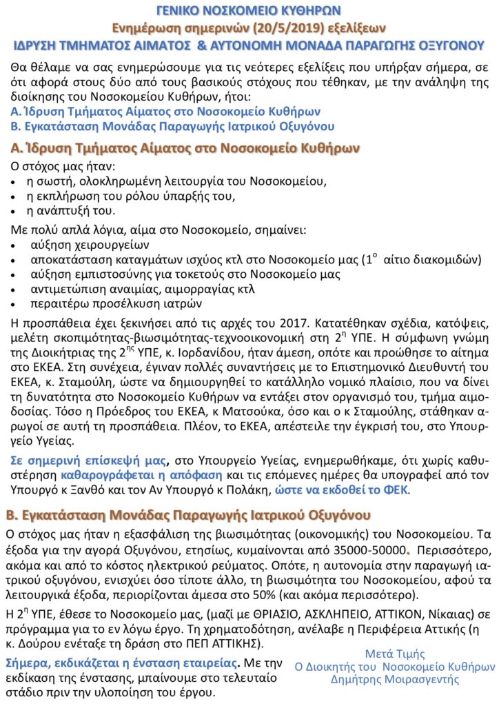 Ίδρυση Τμήματος Αιμοδοσίας κ Αυτόνομη Παραγωγή Ιατρικού Οξυγόνου