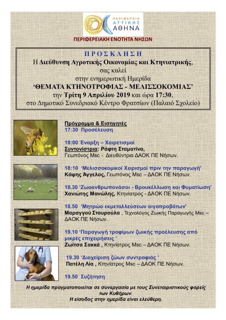 - Ημερίδα για την κτηνοτροφία – μελισσοκομία