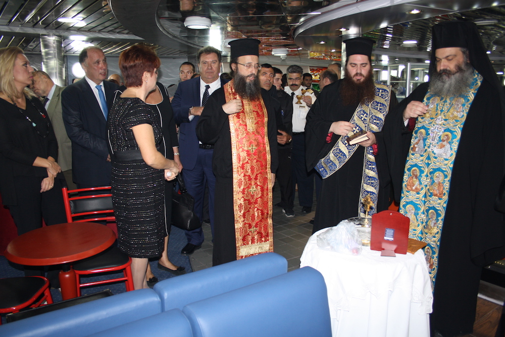 Το απόγευμα της Πέμπτης έγινε ο αγιασμός στο πλοίο ΙΟΝΙΣ, το οποίο από Παρασκευή 27 Οκτωβρίου αρχίζει τα δρομολόγιά του προς τις γραμμές των Κυθήρων. Ο αγιασμός τελέσθηκε από τον πρωτοσύγκελο της Μητροπόλεως Πειραιώς, ο οποίος εκπροσώπησε το Μητροπολίτη Πειραιώς κκ Σεραφείμ.