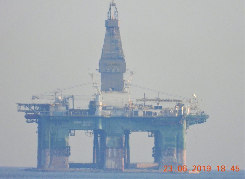 Ένα ακόμη γεωτρύπανο έβαλε πλώρη για την Τουρκία και πέρασε 6.6 ν.μ. νότια από το Καψάλι Κυθήρων το απόγευμα της 23ης Ιουνίου. Το γεωτρύπανο ονομάζεται ERIC RAUDE και ρυμουλκείται από το Ολλανδικό ρυμουλκό ALP CENTRE 3.372 τ.