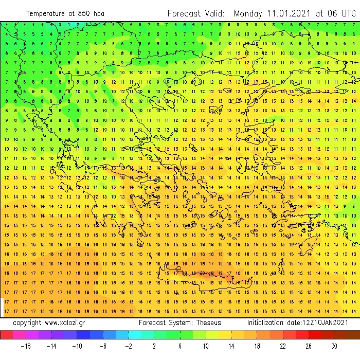 Αξίζει να σημειώσουμε ότι σήμερα στις ίδιες περιοχές και στο ίδιο ύψος της ατμόσφαιρας η θερμοκρασία θα προσεγγίσει τους 10 με 12 βαθμούς κελσίου, τιμές πάνω από τα συνηθισμένα για την εποχή επίπεδα.