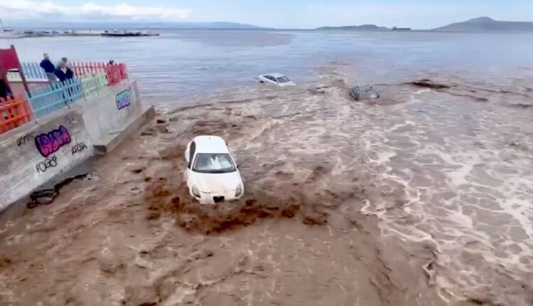 Κακοκαιρία «Daniel»: Τόνοι νερού σε χείμαρρο παρασύρουν αυτοκίνητα στη θάλασσα της Νεάπολης