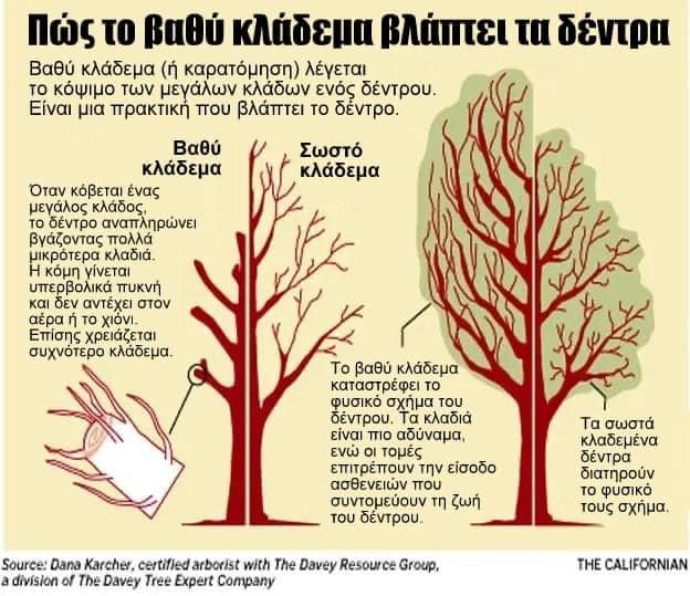 Τα τελευταία χρόνια, πολλοί δήμοι, επιλέγουν το βαθύ κλάδεμα ή καρατόμηση (tree topping) των δέντρων.