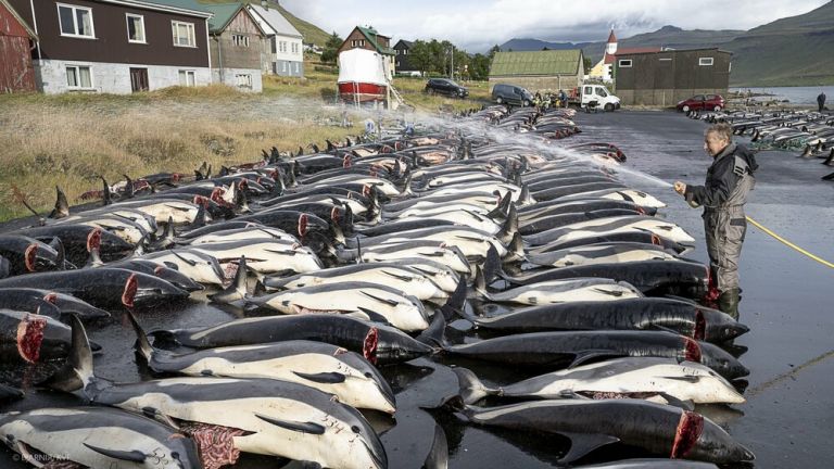 Σύμφωνα με τα τοπικά μέσα ενημέρωσης, 1.428 δελφίνια σκοτώθηκαν κατά τη διάρκεια του κυνηγιού το Σαββατοκύριακο.