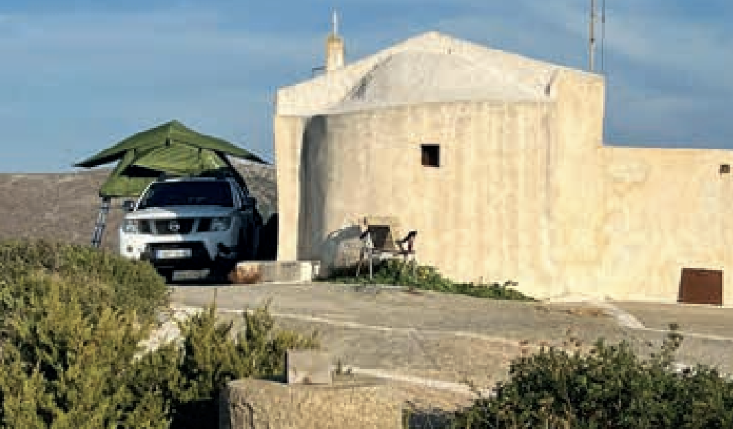 Όμως είχαμε και απίθανες περιπτώσεις κατασκηνώσεων, όπως αυτή που βλέπετε στη φωτογραφία, που ένας ανέβηκε τον Αύγουστο στο βουνό των Αγίων Ακινδύνων πάνω από το Καψάλι, έστησε το αυτοκινούμενο στο προαύλιο του ναού, άνοιξε τις τέντες και έκλεισε ακόμη και την είσοδο. Φυσικά δεν ενημερώθηκε η Αστυνομία ή κάποια άλλη αρχή και μάλλον έφυγε ανενόχλητος μετά τις διακοπές του. Αντίθετα, στις παραλίες και όπου γινόταν γνωστό στην Εγχώριο ή την Αστυνομία, πήγαιναν όργανα, έκαναν τις συστάσεις και, σε περίπτωση αδιαφορίας συμμόρφωσης έκοβαν τα νόμιμα πρόστιμα. Έχουμε στοιχεία για αρκετές περιπτώσεις που ελήφθησαν μέτρα, ήταν αδύνατον όμως να γίνει αυτό παντού, με αποτέλεσμα να συμβαίνει σε αρκετά σημεία αυτό που βλέπετε στις φωτογραφίες μας.