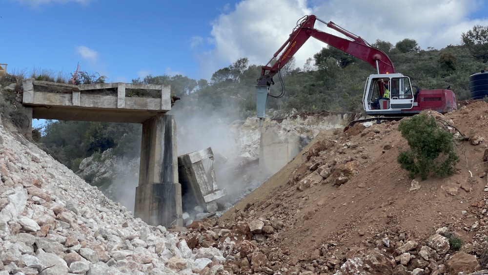 Κατεδάφιση της γέφυρας στο Μάκρωνα