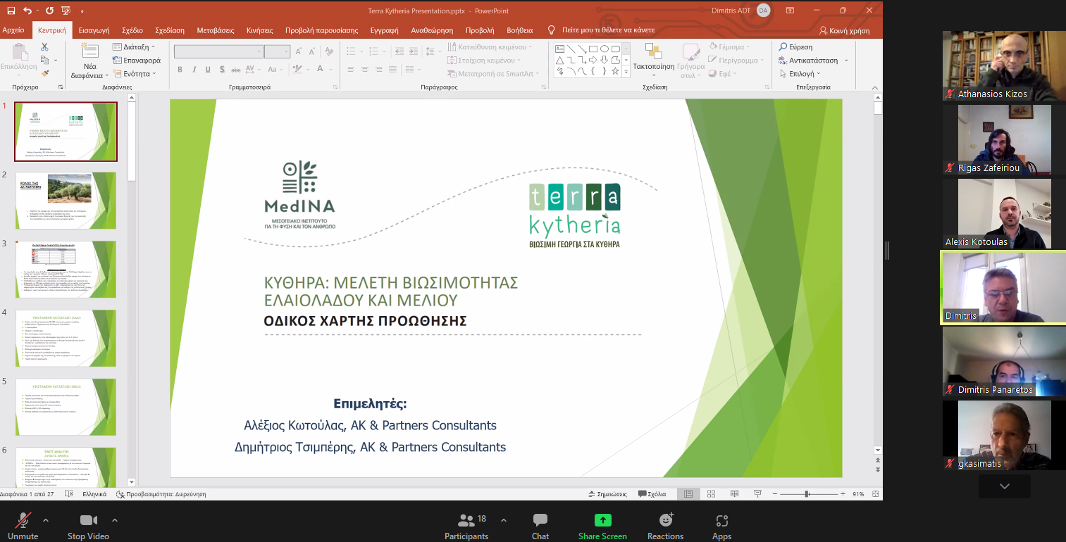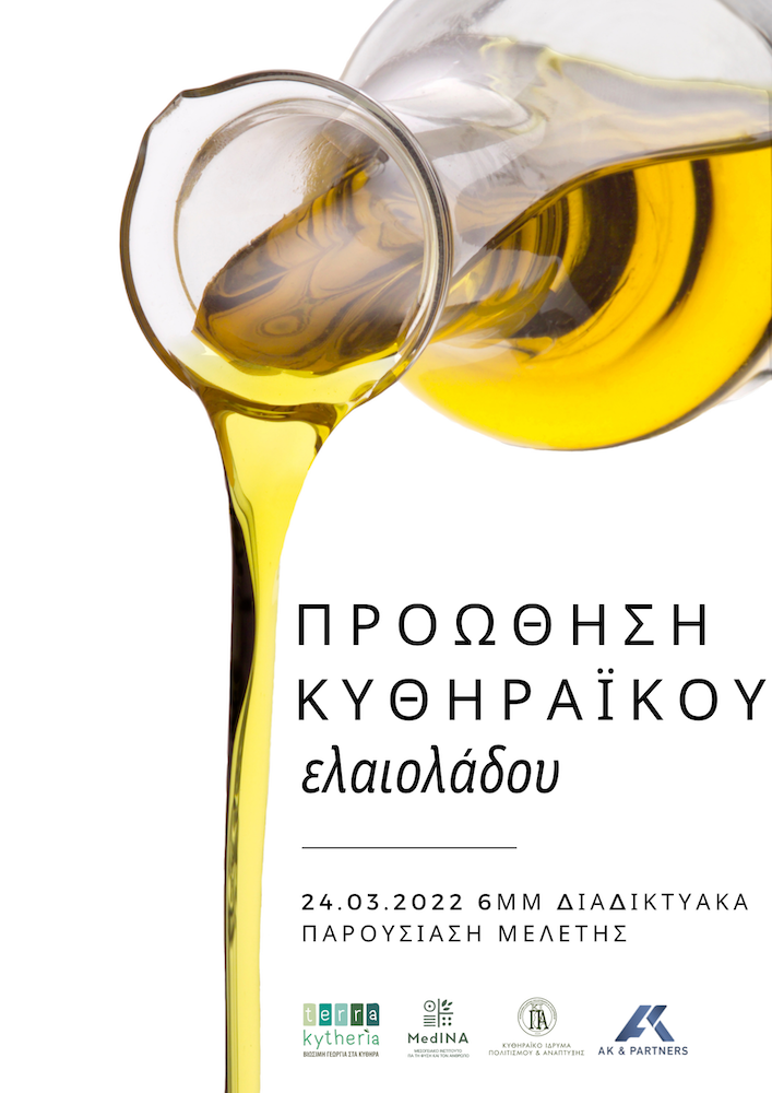 Την Πέμπτη 24 Μαρτίου πραγματοποιήθηκε η παρουσίαση του οδικού χάρτη προώθησης του κυθηραϊκού ελαιολάδου, βάσει της μελέτης που εκπονήθηκε στο πλαίσιο του προγράμματος Terra Kytheria.