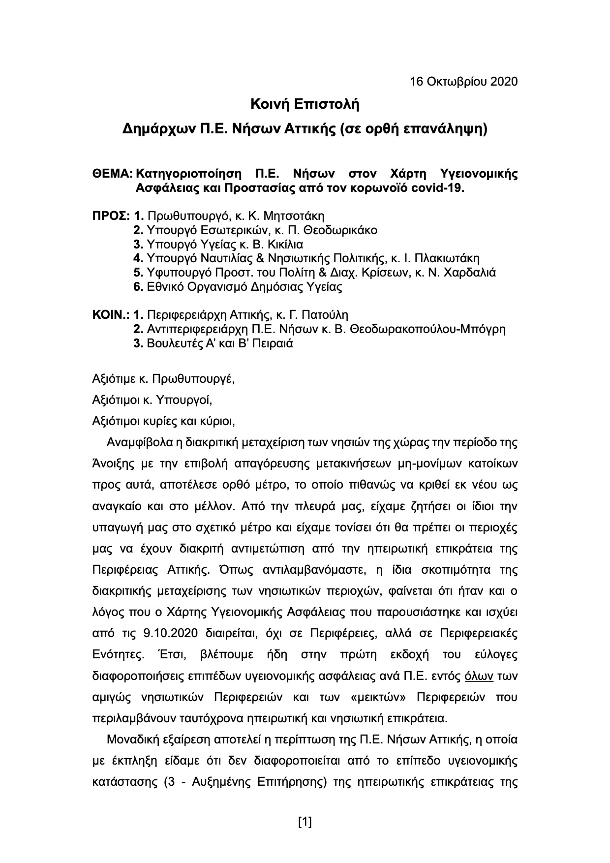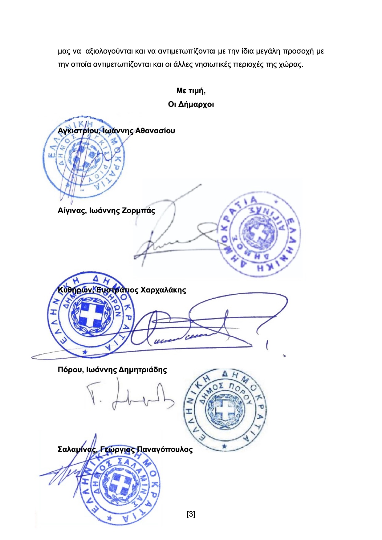 Κοινή επιστολή Δημάρχων Νήσων Αττικής