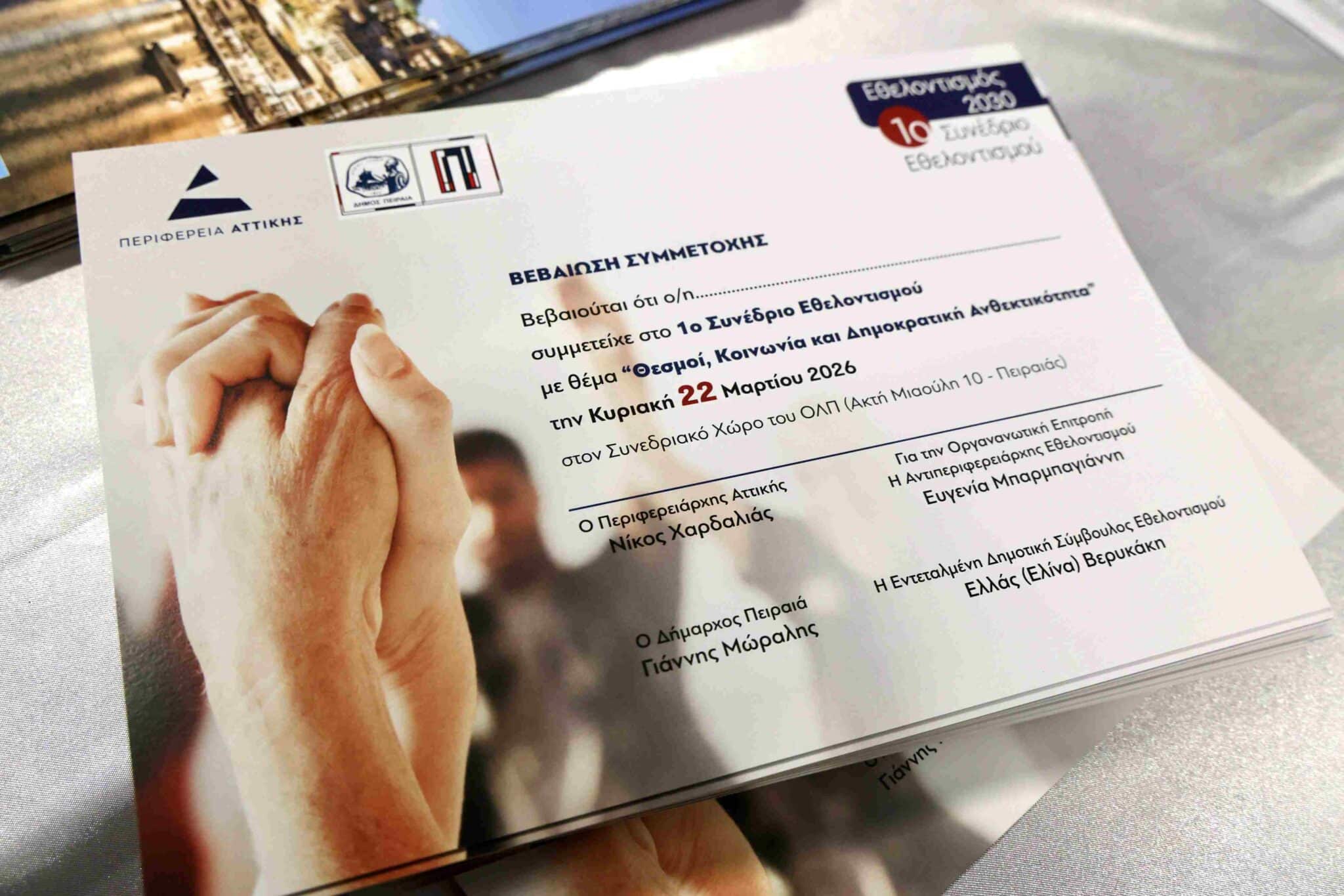 Το 1ο Συνέδριο Εθελοντισμού, υπό τον τίτλο: «Εθελοντισμός 2030 – Θεσμοί, Κοινωνία και Δημοκρατική Ανθεκτικότητα», που συνδιοργάνωσαν η Περιφέρεια Αττικής και ο Δήμος Πειραιά, πραγματοποιήθηκε με μεγάλη επιτυχία και με τη συμμετοχή εκατοντάδων εθελοντών από οργανώσεις όλης της Αττικής, στην αίθουσα εκδηλώσεων του ΟΛΠ.