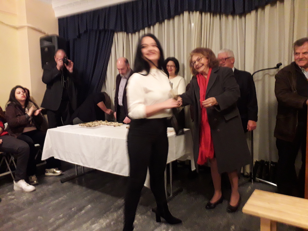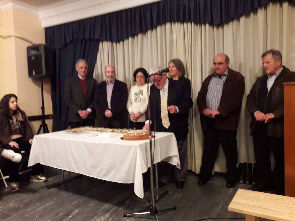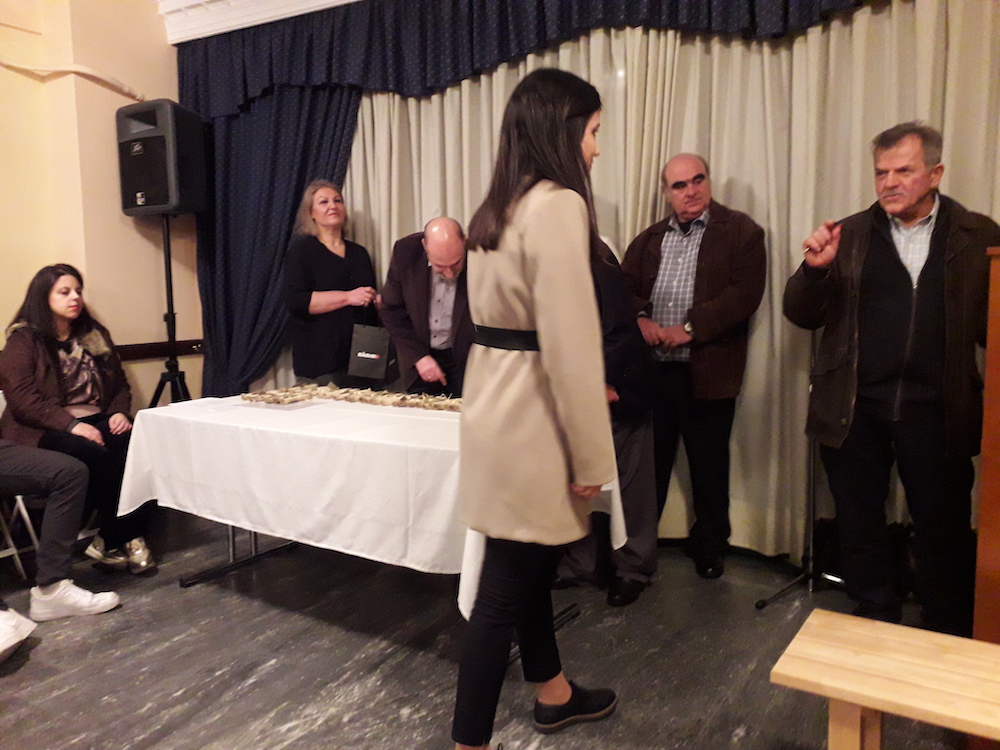 Ακολούθησε μικρή δεξίωση στους παρισταμένους, που γέμισαν ασφυκτικά την αίθουσα της Αδελφότητος.