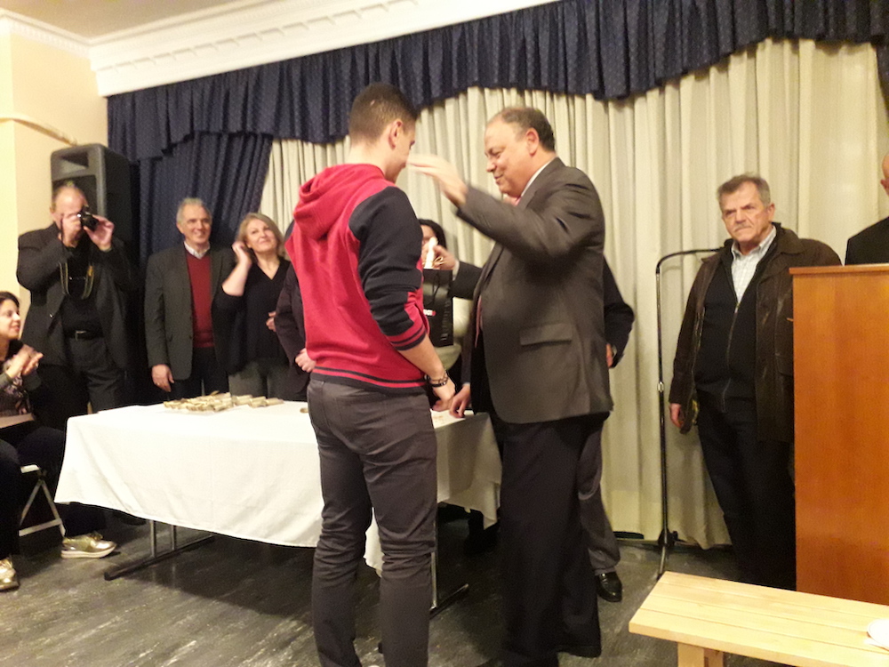 Μετά τη σύντομη ομιλία, το χαιρετισμό και τις ευχές του προέδρου της Αδελφότητας κ. Βρ. Κυπριώτη, ο οποίος πλαισιωνόταν από τα μέλη του Δ.Σ. και ακολούθησε η απονομή αναμνηστικών στους νέους φοιτητές από εκπροσώπους σωματείων των Κυθήρων και των Αντικυθήρων.