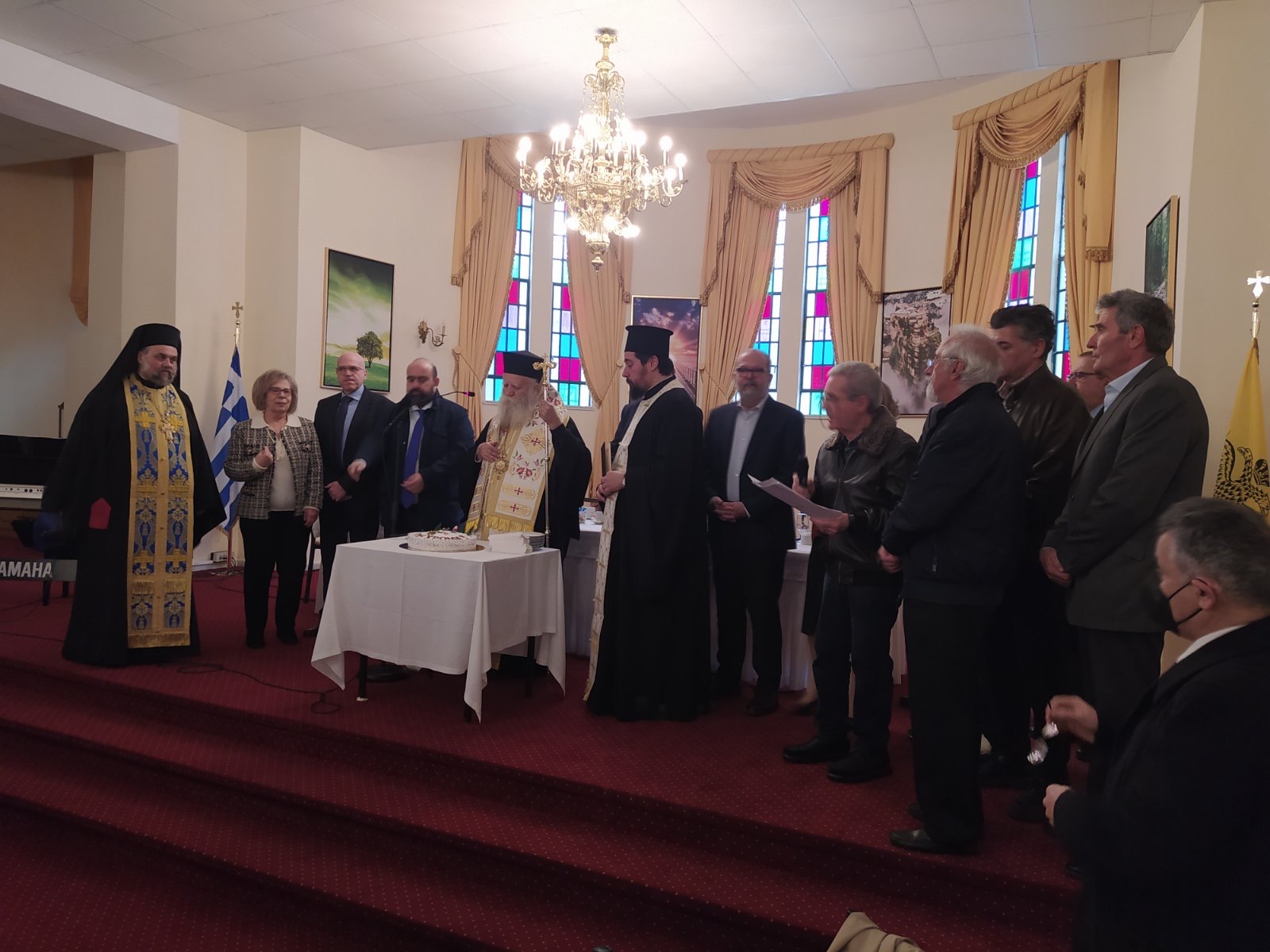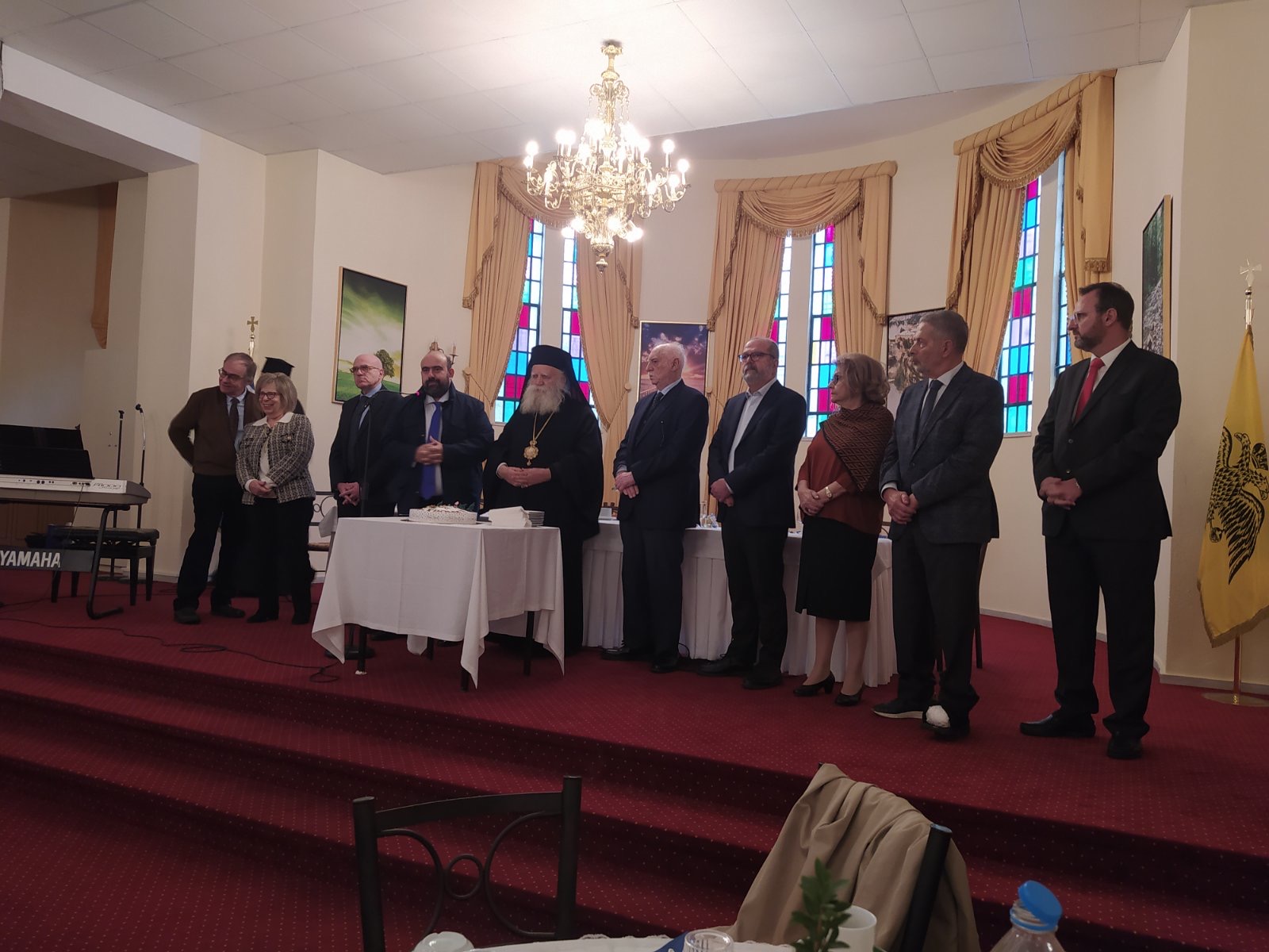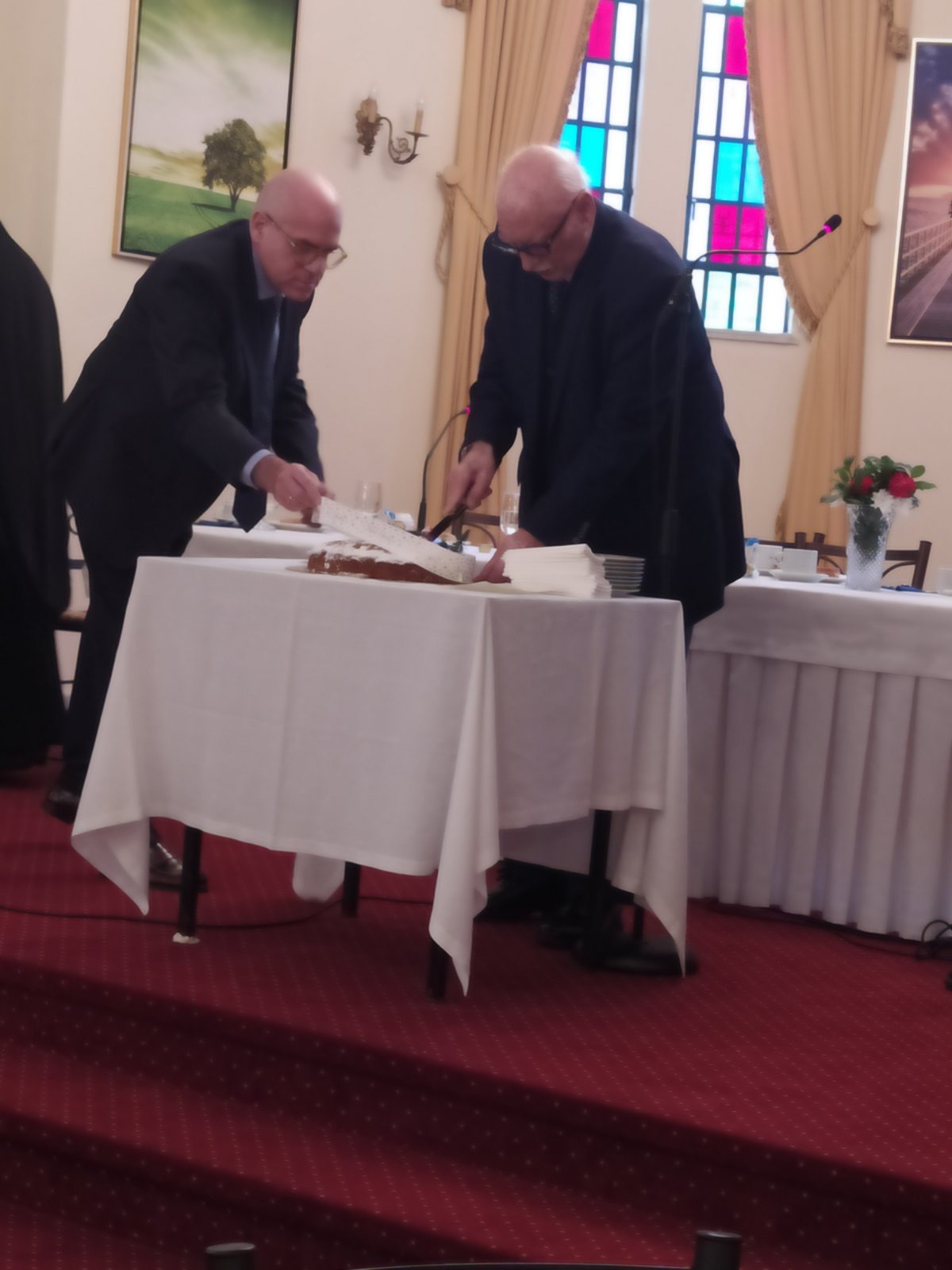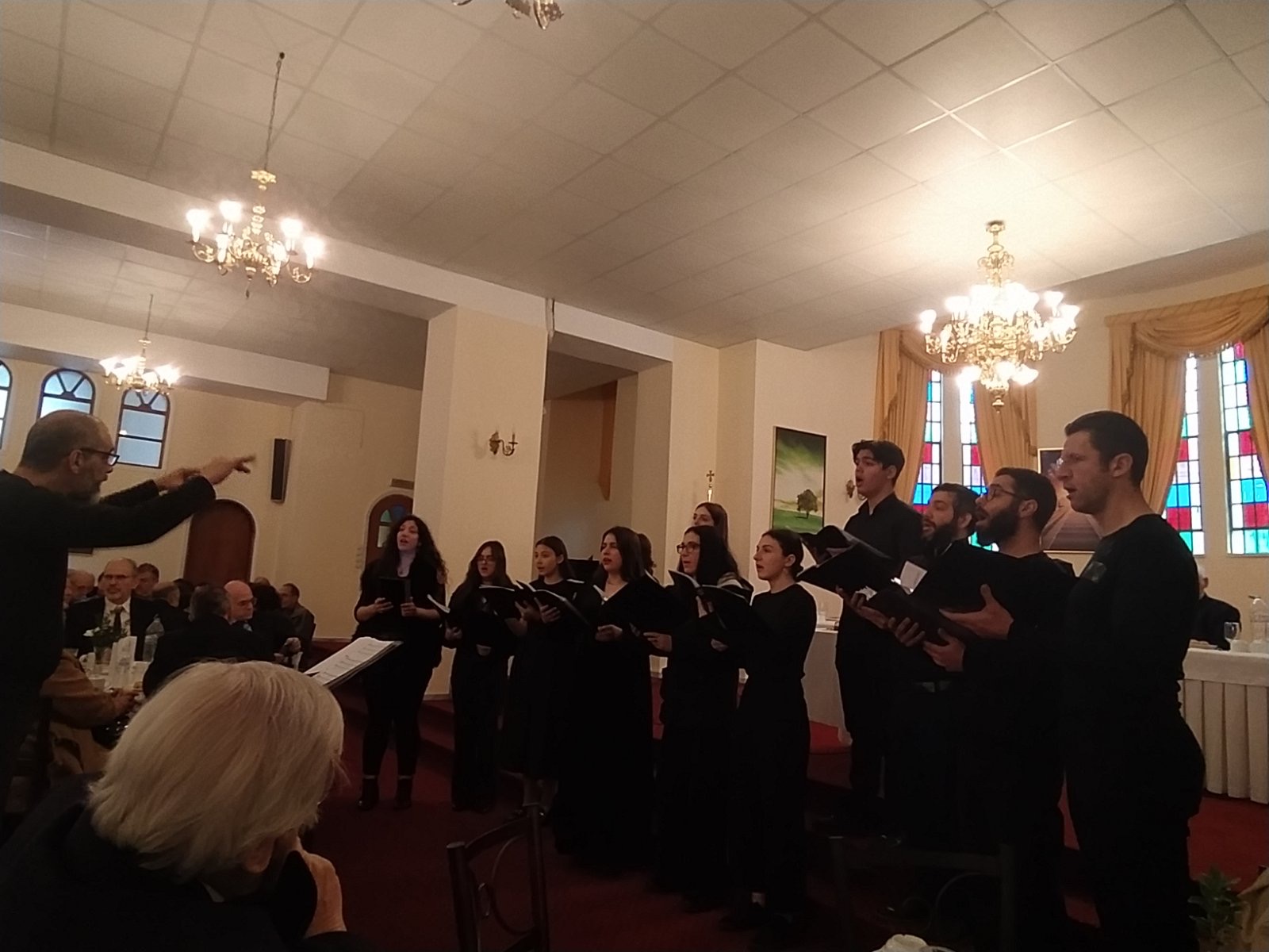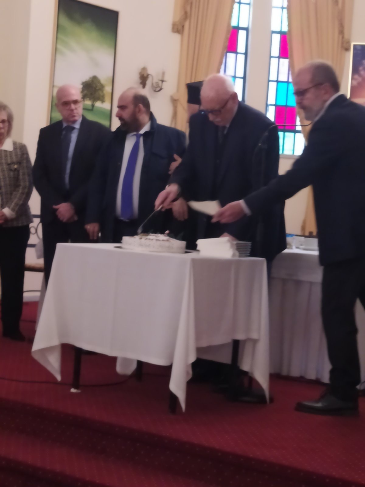 Μετά την κοπή, τμήμα από τη Χορωδία του Ωδείου «Αναγέννηση» του κ. Τ. Λιγνού, που εκλήθη από τον κ. Δ. Καλαϊτζάκη απέδωσε ύμνους και ακολούθησε προσφορά καφέ και ανταλλαγή ευχών.
