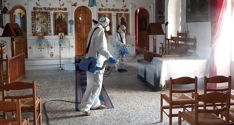 Στις εκκλησίες, τους κοινόχρηστους και δημόσιους χώρους του χωριού, καθώς και στο σπίτι της οικογένειας των νοσούντων, πραγματοποιήθηκαν χτες απολυμάνσεις.
