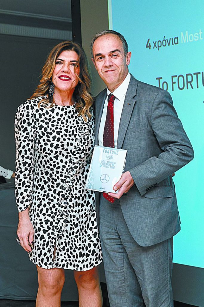 Ισχυρό «παρών» για τρίτη χρονιά ανάμεσα στις 20 πιο αξιοθαύμαστες εταιρείες στη χώρα μας έδωσε η Mercedes-Benz Ελλάς, καταλαμβάνοντας τη 10η θέση της λίστας εταιρικής φήμης στην έρευνα του περιοδικού «Fortune», η οποία πραγματοποιείται σε συνεργασία με τη διεθνή εταιρεία παροχής ελεγκτικών, φορολογικών και συμβουλευτικών υπηρεσιών KPMG.