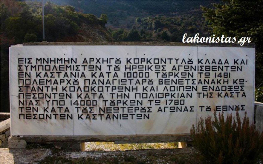 Ο Κλαδάς με ορμητήριο τα κάστρα της Καστανιάς και του Χελμού, πάνω από το σημερινό Σκορτσινού, αποκόπτει την επικοινωνία της Λακωνικής με την υπόλοιπη Πελοπόννησο”.