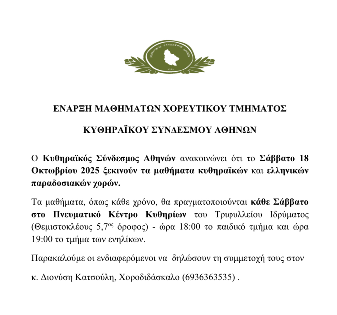 - ΚΣΑ – ΕΝΑΡΞΗ ΜΑΘΗΜΑΤΩΝ ΧΟΡΕΥΤΙΚΟΥ