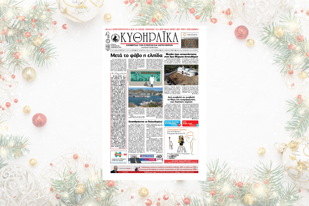 Κυκλοφόρησε το φύλλο Δεκεμβρίου 2020 της εφημερίδας ΚΥΘΗΡΑΪΚΑ