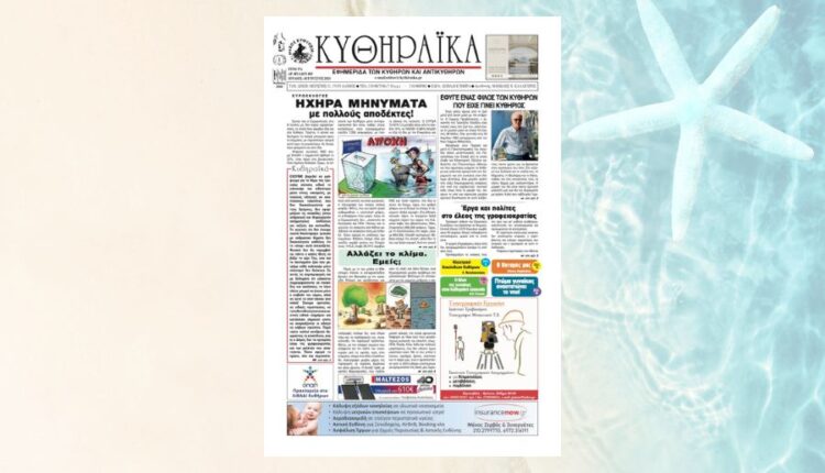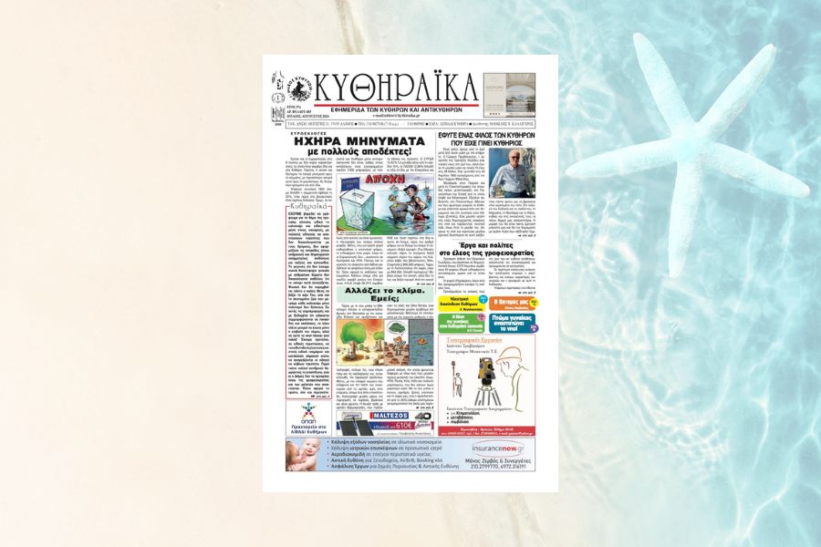 Κυκλοφόρησε το φύλλο Ιουλίου – Αυγούστου 2024 της εφημερίδας «ΚΥΘΗΡΑΪΚΑ»