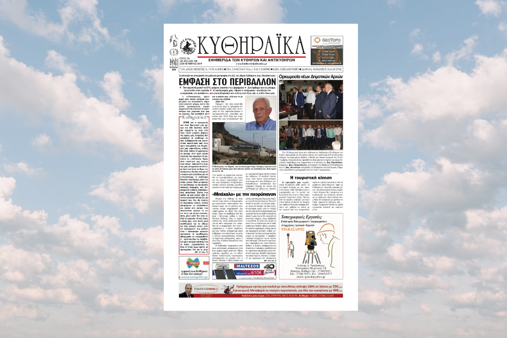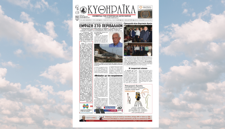 Κυκλοφόρησε το φύλλο Σεπτεμβρίου 2019 της εφημερίδας ΚΥΘΗΡΑΪΚΑ