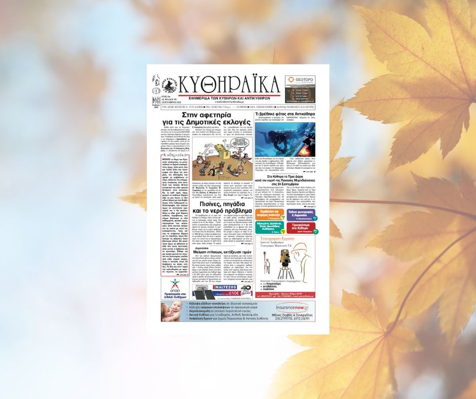 Κυκλοφόρησε το φύλλο Σεπτεμβρίου της εφημερίδας “ΚΥΘΗΡΑΪΚΑ”