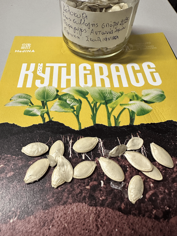 Η πρωτοβουλία αυτή είναι αποτέλεσμα της μακροχρόνιας συνεργασίας μεταξύ του MedINA και του ΚΙΠΑ αλλά και του τοπικού συντονισμού της ομάδας έργου (Δανάη Σφακιανού, Πέγκυ Βασιλείου, Κική Μαύρου, Γιώργος Κασιμάτης, Ρήγας Ζαφειρίου), των εθελοντριών (Μάσα Ζούσμαν και Φεντερίκα Μάρμο) και των πρώτων διατηρητών/δωρητών σπόρων (Αντωνία Σαμίου, Γιώτα Φαρδούλη, Νίκος Καλλίγερος, Μανώλης Κασιμάτης, Θεόδωρος Θεοδώρου και Γρηγορία Γιαννιώτη)