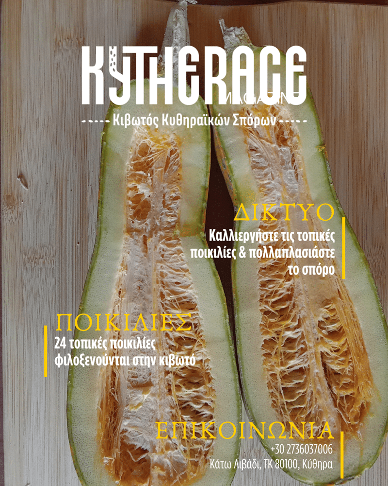Υπεύθυνη Κιβωτού Κυθηραϊκών Σπόρων: Πέγκυ Βασιλείου, 6945467752