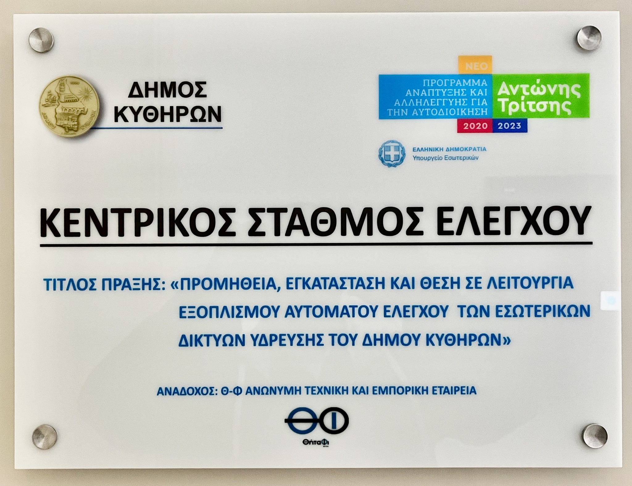 • Υποέργο 8: Εξοικονόμηση ενέργειας στο σύστημα ύδρευσης του Δήμου Κυθήρων