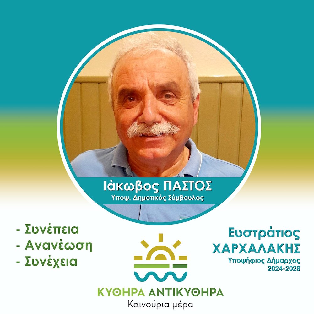 Κύθηρα Αντικύθηρα Καινούργια μέρα: Μαζί μας ως υποψήφιος Δημοτικός Σύμβουλος, ο Ιάκωβος Παστός!