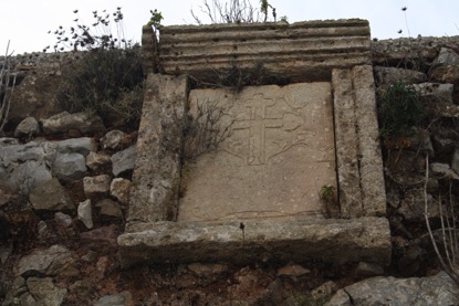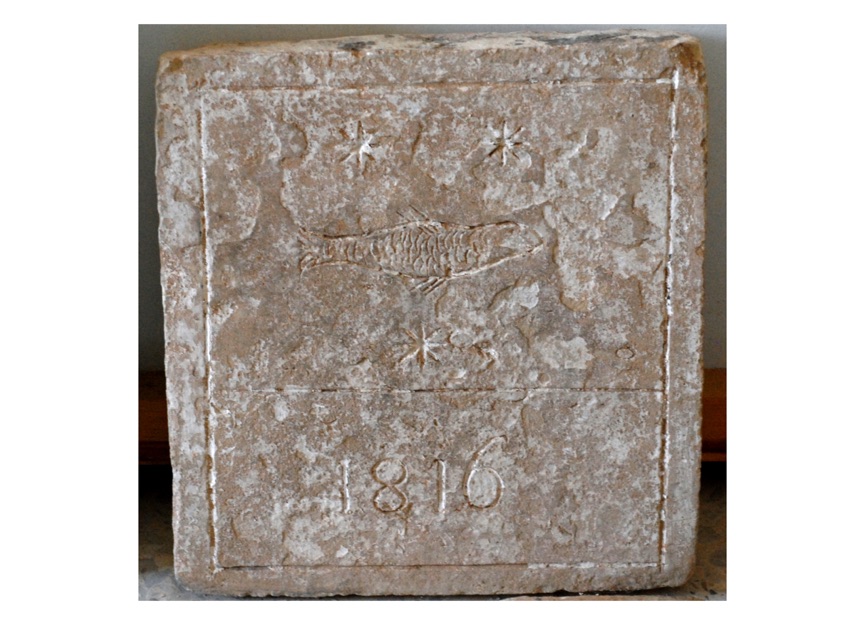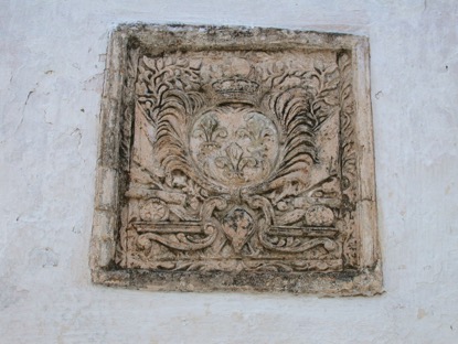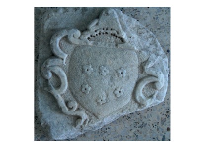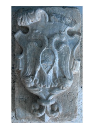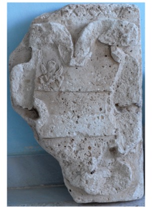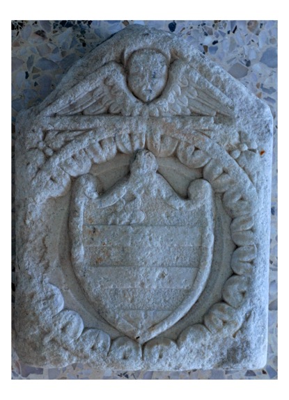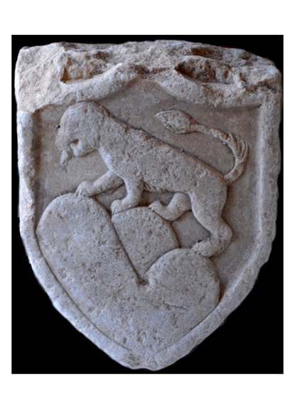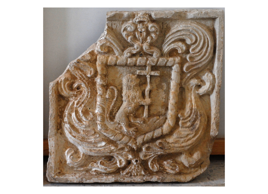 Μαρμάρινο οικόσημο με ανάγλυφη παράσταση λέοντος. Δεν έχει αναγνωρισθεί η οικογένεια στην οποία ανήκει.
