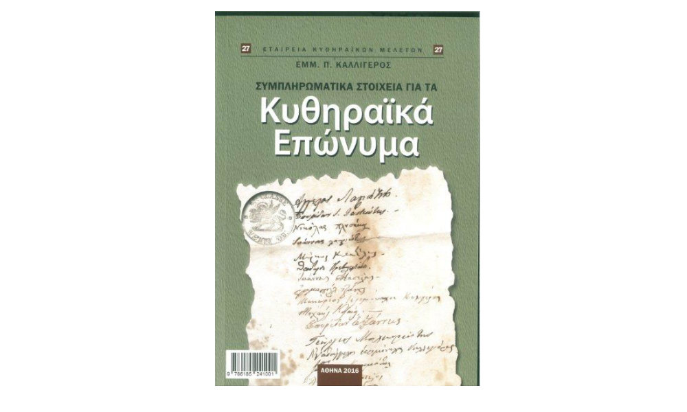 Όπως αναφέρεται και στον τίτλο πρόκειται για ένα μικρό συμπλήρωμα του βιβλίου που εκδόθηκε το 2002, επανεκδόθηκε το 2006 με βελτιώσεις, είδε μία έκδοση στα αγγλικά και τώρα με το παρόν βιβλίο συμπληρώνεται κυρίως με νέα στοιχεία, αλλά και προσθήκη μερικών επωνύμων, τα οποία δεν είχαν συμπεριληφθεί στην αρχική έκδοση. Συνολικά περιλαμβάνει σχεδόν 80 επώνυμα και το πλέον σημαντικό στοιχείο, το οποίο έχει προστεθεί, είναι μία νέα έρευνα σε ανέκδοτα στοιχεία, τα οποία μεταθέτουν την προς τα πίσω εμφάνιση των εξεταζομένων επωνύμων στο νησί φθάνοντας μέχρι το 13ο, 14ο και 15ο αι. Όλα δε τα στοιχεία βασίζονται σε γραπτές πηγές και προσθέτουν στην Κυθηραϊκή ανθρωπογεωγραφία κρίσιμα στοιχεία για τις μετακινήσεις οικογενειών σε ένα απομονωμένο νησί της Βυζαντινής αυτοκρατορίας και μάλιστα σε σκοτεινούς για την έρευνα αιώνες, τους πρώτους της Ενετικής κυριαρχίας στο νησί.