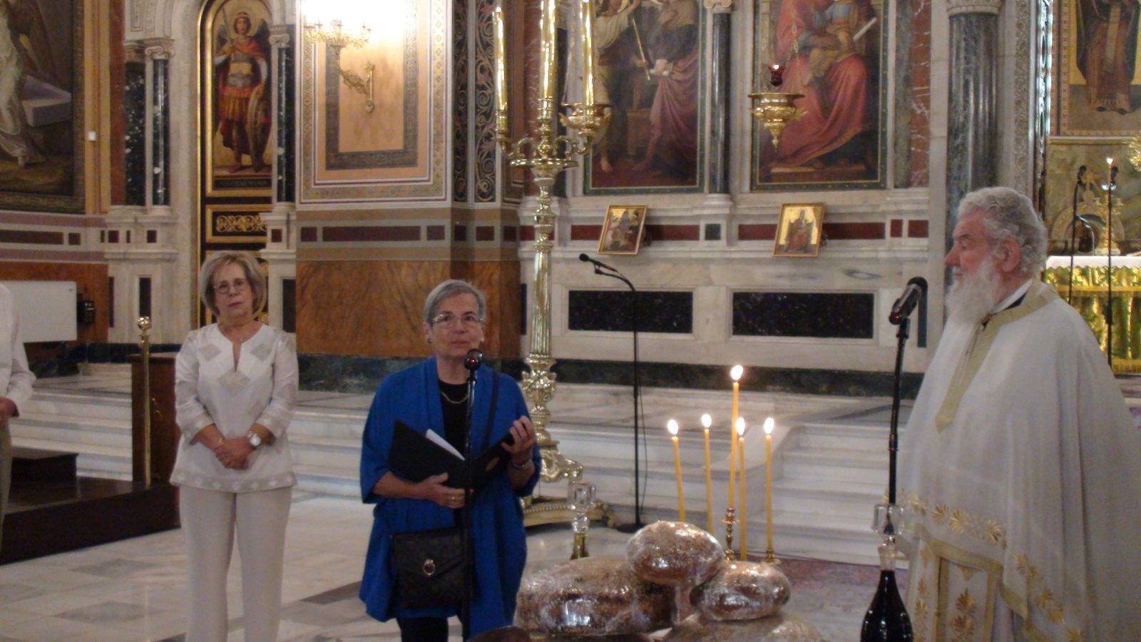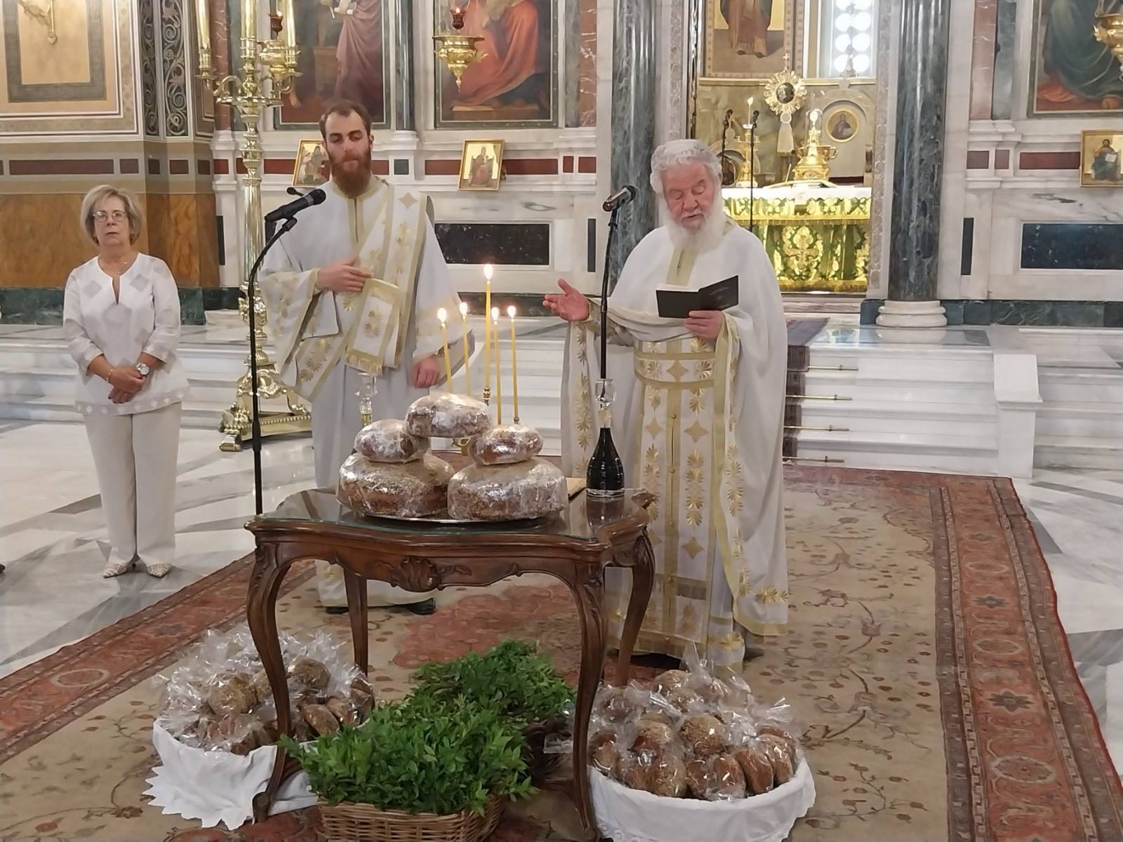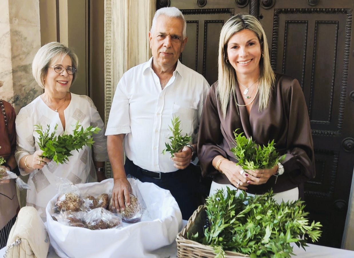 Ακολούθησε η ευλογία των άρτων και η Προέδρος του Κυθηραϊκού Συνδέσμου, κ. Βασιλική Σαμίου, ευχήθηκε Χρόνια Πολλά και ευχαρίστησε όλους για την παρουσία τους. Η συμπατριώτισσα μας κ. Ελένη Χάρου έψαλλε το τροπάριο της Παναγίας Μυρτιδιώτισσας του Σοφοκλή Καλούτση. Η Προέδρος του Κυθηραϊκού Συνδέσμου, κ. Βασιλική Σαμίου, ευχήθηκε Χρόνια Πολλά και ευχαρίστησε όλους για την παρουσία τους. Στο τέλος του εορτασμού μοιράστηκαν, όπως πάντα, μυρτιές και άρτοι από τα Κύθηρα.