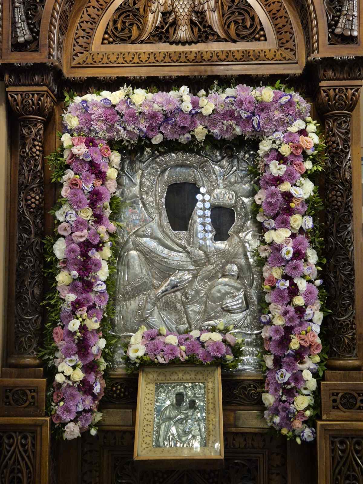 Προς την κ. Αλεξάνδρα Λουράντου, που προσέφερε τον στολισμό της εικόνας της Παναγίας Μυρτιδιώτισσας.