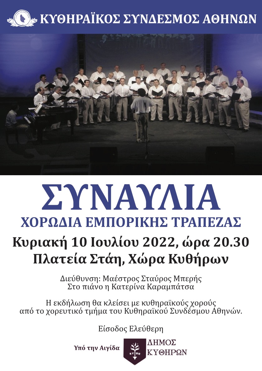 ΚΥΘΗΡΑΪΚΟΣ ΣΥΝΔΕΣΜΟΣ ΑΘΗΝΩΝ – ΣΥΝΑΥΛΙΑ ΜΕ ΤΗ ΧΟΡΩΔΙΑ ΤΗΣ ΕΜΠΟΡΙΚΗΣ ΤΡΑΠΕΖΑΣ